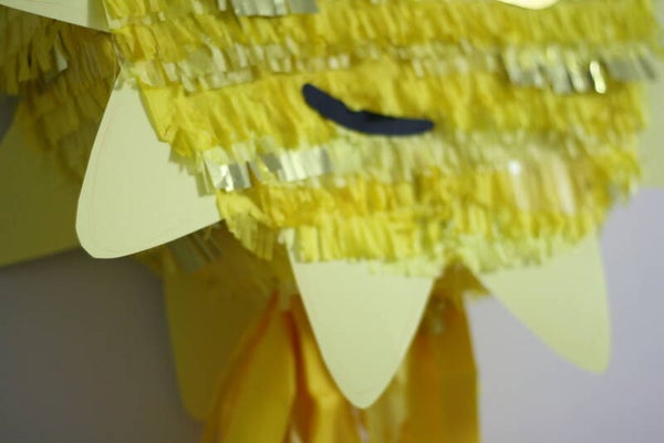 Pormenores: Pinhata em forma de Sol decorada dos dois lados com óculos e boca